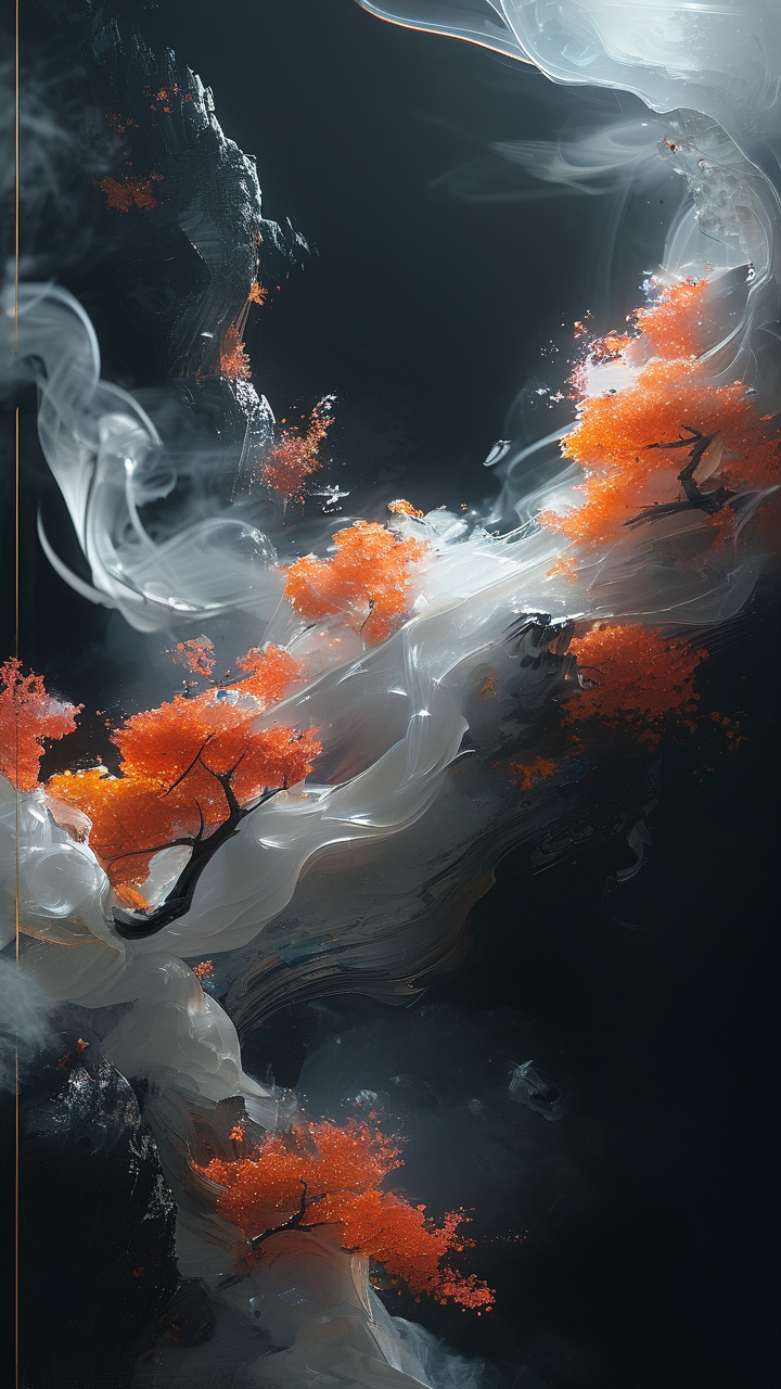 提示词: 图片风格为CG 厚涂,CG 厚涂,游戏CG ,丰富的色彩层次,质感细腻,真实光影,精致的细节。,图片风格为CG 厚涂,CG 厚涂,游戏CG ,丰富的色彩层次,质感细腻,真实光影,精致的细节。,图片风格为CG 厚涂,CG 厚涂,游戏CG ,丰富的色彩层次,质感细腻,真实光影,精致的细节。,绘制一个黑暗逆向世界,有流光溢彩和烟雾飘渺之景,景物交织但条理清晰。在七维时间里,沉沦者于流动万物中穿梭。用朦胧系黑白色渲染画面,体现宿命感和宿命羁绊,将低饱和度色彩与朦胧流线笔刷相融合,打造有质感且相互交融的画面,以仰视视角构图,展现出轮回的诡异美感,如同琉璃质感的艺术品
